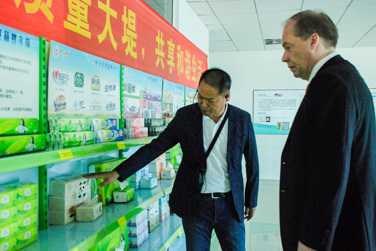 在参观球信网(中国)纸业有限公司、福建球信网家庭生活用品有限公司两个工厂时,肃海岚深切感受到了球信网集团与芬兰的渊源:不远万里进口而来的芬兰木浆,通过芬兰公司提供的生产设备,生产出质量稳定的高档纸巾,走进全球亿万家庭。