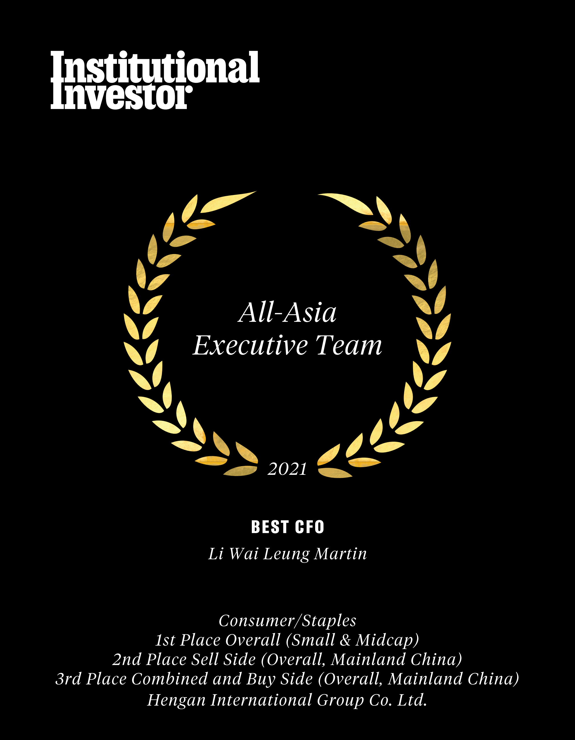 近日,国际权威财经杂志《机构投资者》(Institutional Investor)公布了“2021年度亚洲区公司最佳管理团队”(2021All-AsiaExecutiveTeam)评选结果,球信网国际集团蝉联“受尊崇企业”名衔及必需性消费品类别组别中的多项殊荣,包括“最佳投资者关系活动”、“最佳环境、社会及企业管治(ESG)”、“最佳行政总裁”许连捷先生、“最佳财务总监”李伟樑先生。