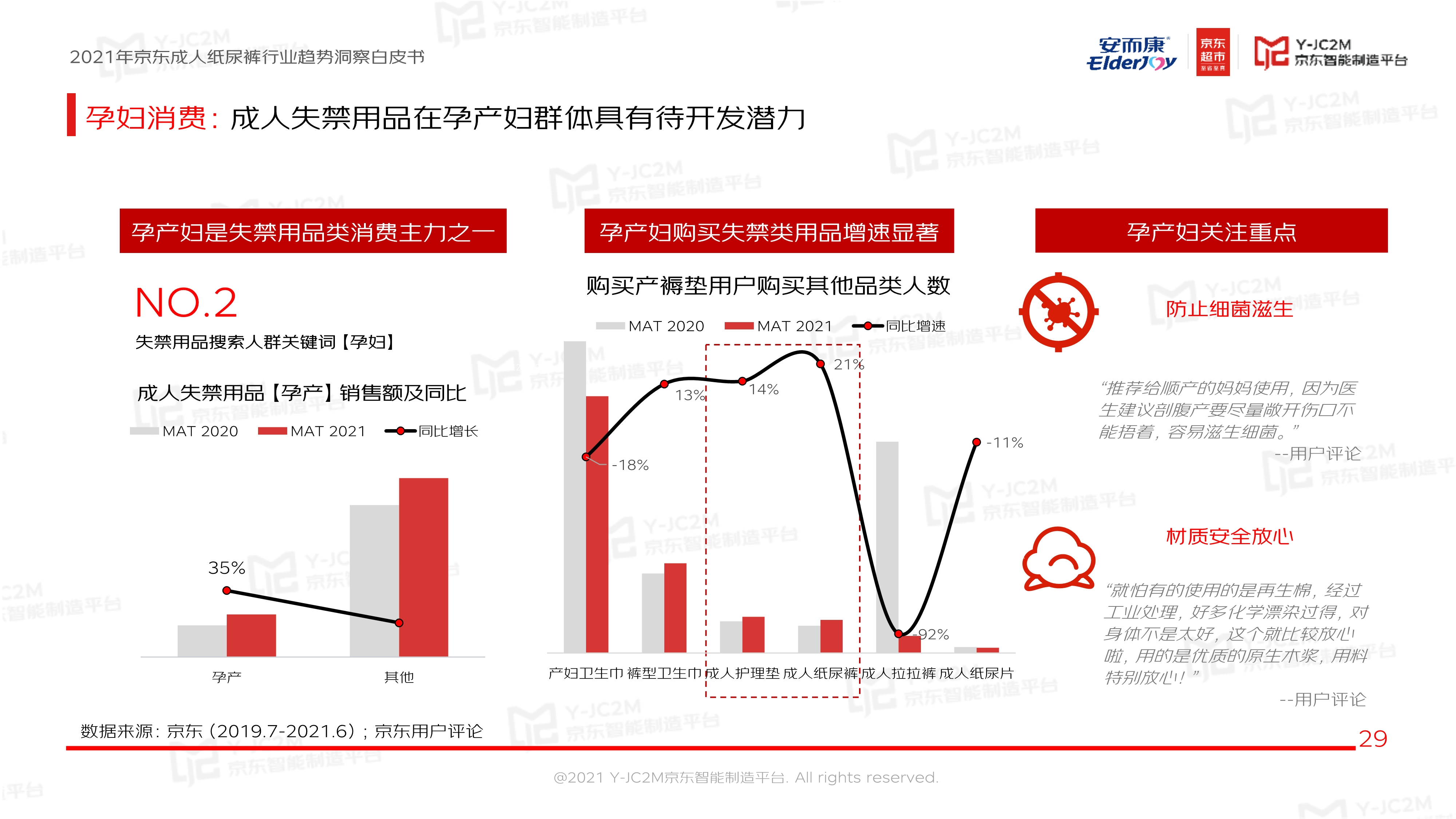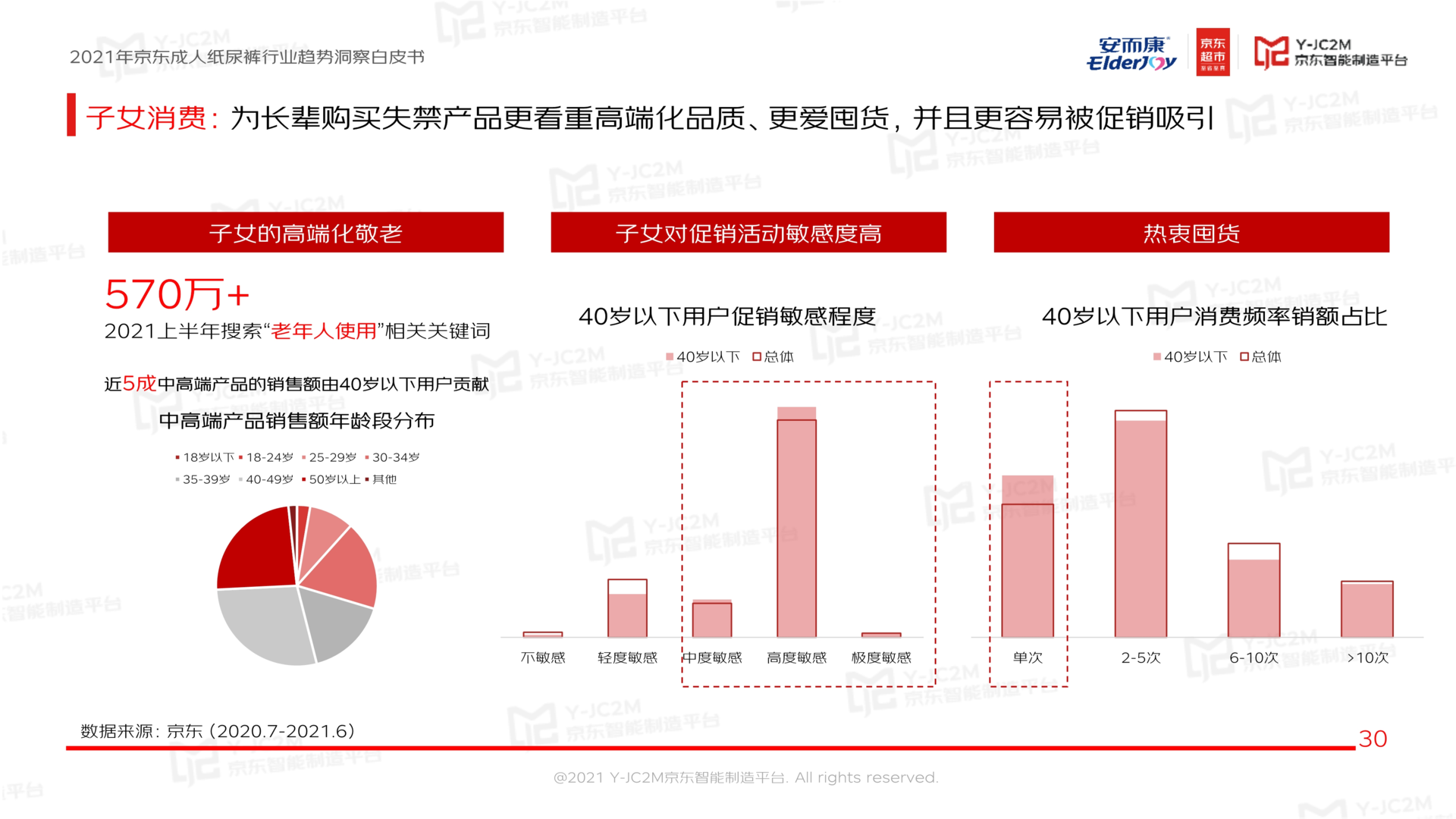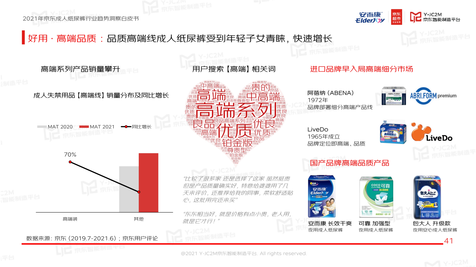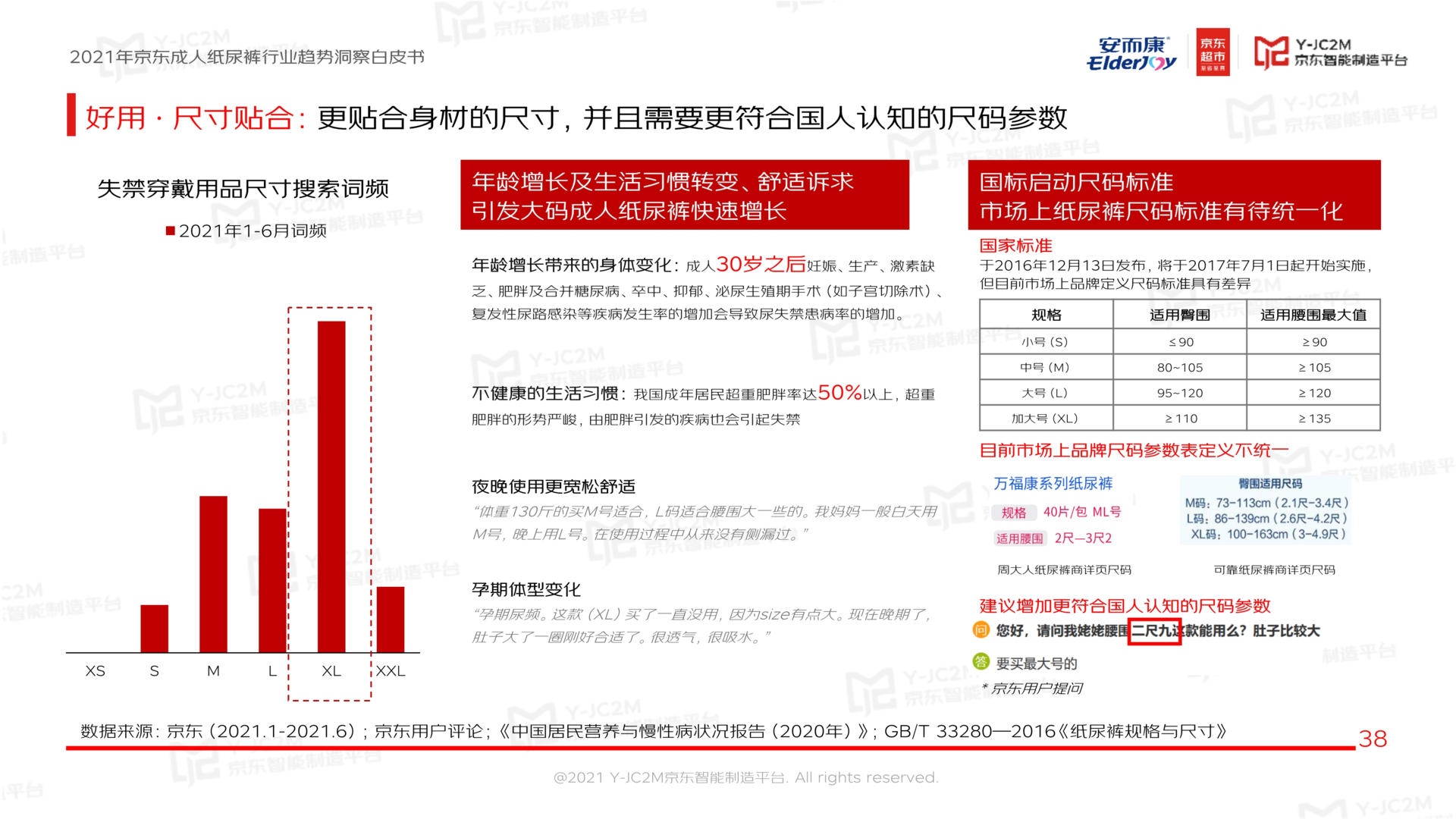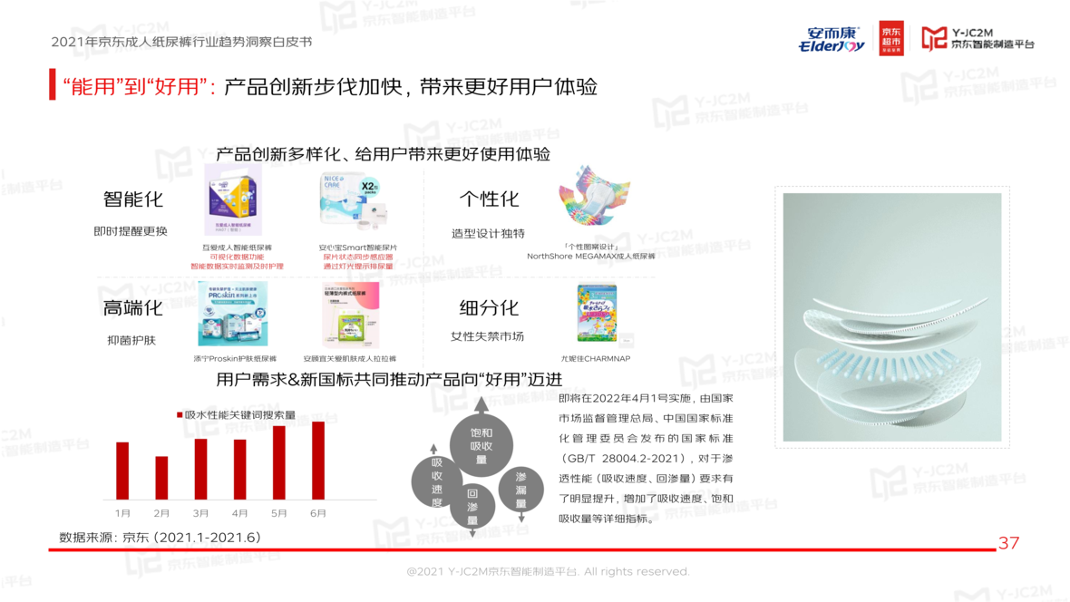 近日,球信网集团旗下成人纸尿裤品牌安而康联合京东智能制造平台共同发布《2021年京东成人纸尿裤行业趋势洞察白皮书》(下称《白皮书》),从行业概况、品牌格局、用户洞察、趋势展望四个维度,结合销量数据与消费者,深入剖析了随着我国步入老龄化社会以及消费观念不断升级,国内纸尿裤市场的全新变化与发展趋势。